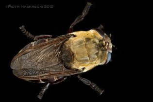 It is also important that the object you are shooting is not resting directly on the black background. I use black velvet, which reflects relatively little light, but if a small insect sits directly on top of it then the fabric’s texture will be plainly visible. Thus, I place any subjects that can be shot in a vertical position (a plant, an insect on a branch) at least 20-30 cm away from the background, usually by holding it in a “helping hand” clamp. If the animal needs to sit horizontally, or if I want to shoot it from above I place it on a piece of glass or clear plastic, held horizontally about 20 cm above the black velvet. In the latter case it is very important that the lights are positioned in such a way that reflections on the glass are minimized (unless a visible reflection is something that you want); proper positioning of the lights can only be found by trial and error, and the glass should be as clean as possible because any smudges or specks of dirt will show against the background.