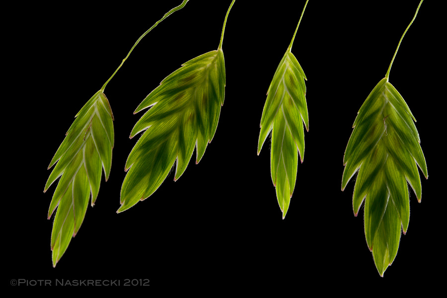 Multi-flowered spikelets of Northern sea oats (Chasmanthium latifolium) [Canon 7D, Canon 100mm macro, three speedlights Canon 580EX]
