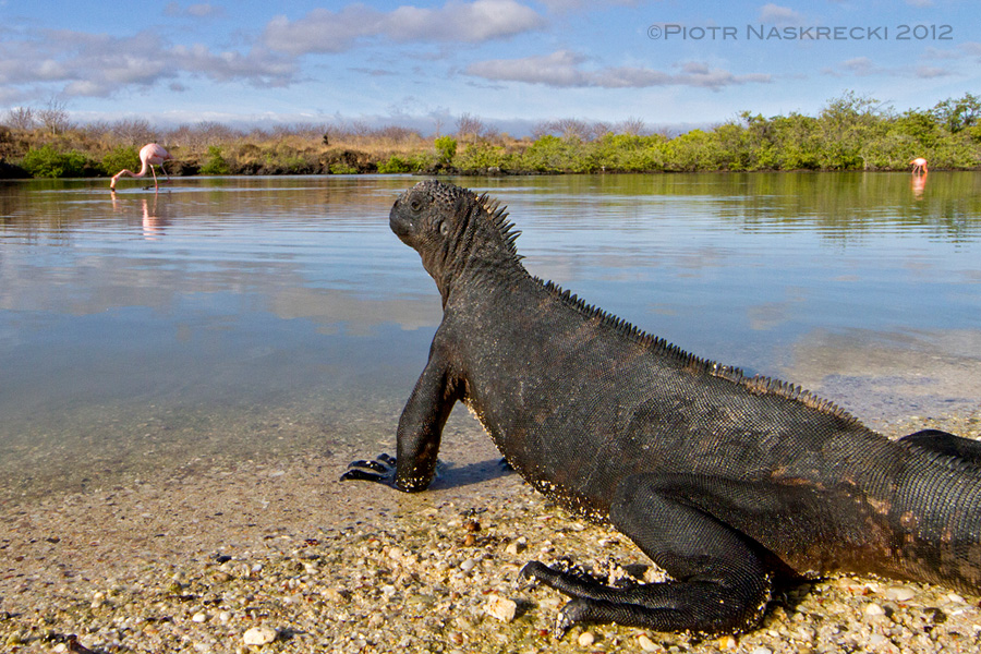 When Charles Darwin visited the Galapagos Islands in 1835, he was a young, probably still a bit immature man, and thus I can forgive him the unflattering description of one of the most amazing reptiles that has ever lived on our planet, which he included in his diary of the voyage of the Beagle. Marine iguanas (Amblyrhynchus cristatus) are the world’s only marine lizards. They feed on nothing else but a few species of marine algae that they graze underwater in the cold seas that surround the Galapagos, and never stray away from the forbidding, volcanic shores of the islands. Their appearance evokes the image of the long-gone reptilian giants that once ruled the world, and seeing them in person was to me one of the most thrilling experiences of my life.
