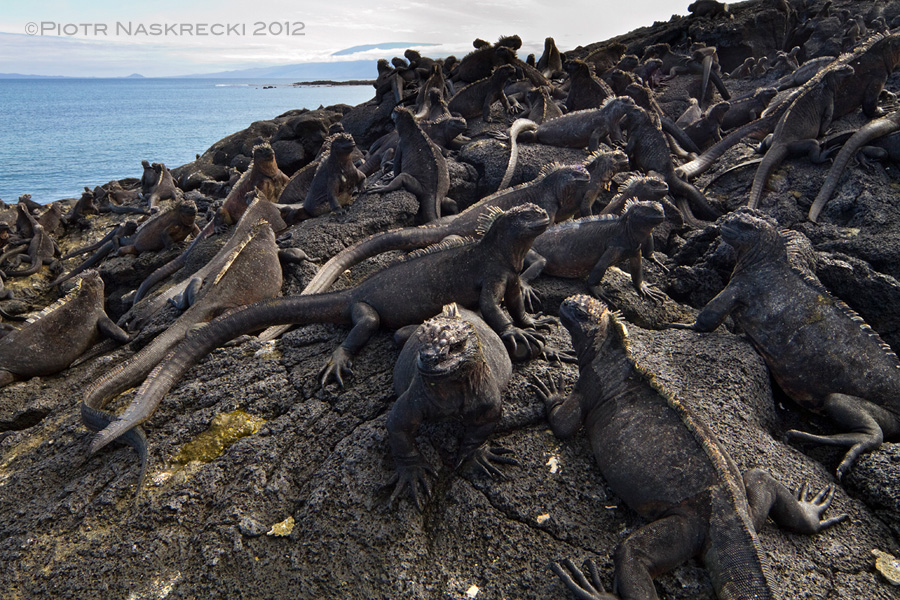 An aggregation of Fernandina iguanas (A. cristatus cristatus) [Canon 7D, Canon 14mm]
