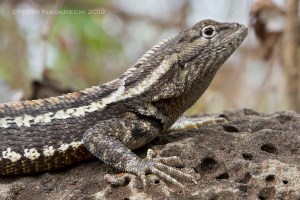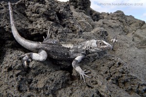 As soon as you start walking on any rocky path in the Galapagos, you will almost certainly encounter an interesting member of the Galapagos herpetofauna, the lava lizard (Tropiduridae: Microlophus.) The jury is still out on the exact number of species (or monophyletic lineages) of these reptiles that inhabit the islands, but the evidence is mounting that the Galapagos have been colonized on two separate occasions by ancestral Microlophus that came from South America. These ancestral populations have subsequently colonized the eastern, progressively younger islands, and developed into genetically distinct populations (Benavides et al 2009.)