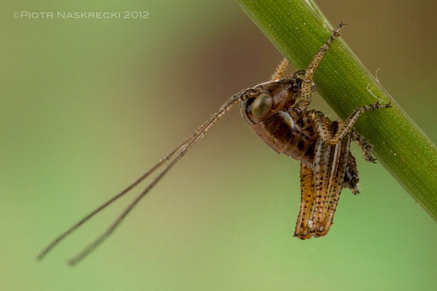 Roeseli’s katydid (Metrioptera roeselii) from Concord, MA [Canon 7D, Canon MP-E 65mm, 3 speedlights Canon 580EXII; 2 images, taken at f14; combined in Helicon Focus]