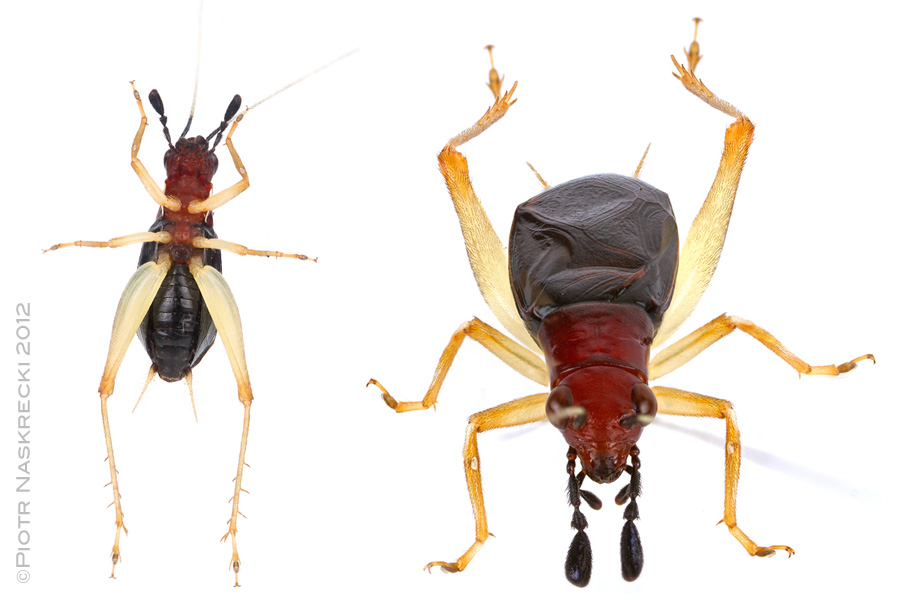 Ventral and frontal views of a male Handsome Trig [Canon 7D, Canon MP-E 65mm, 3 speedlights 580EXII; the frontal view is a composite of 10 stacked images shot at f11]