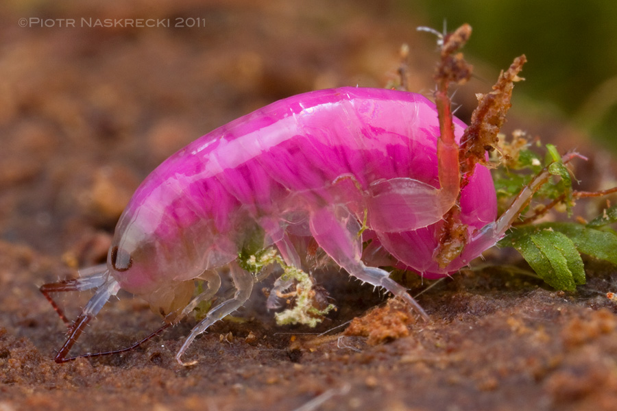 Pink, terrestrial amphipod crustacean from the Muller Range of PNG [Canon 40D, Canon MP-E 65mm, 2 speedlights 580EX]