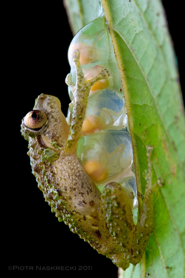 Male of a yet unnamed, new species of tree frog (Oreophryne sp. n.) guarding a clutch of eggs in the Muller Range of PNG [Canon 1Ds MkII, Canon 100mm macro, 2 speedlights 580EX]
