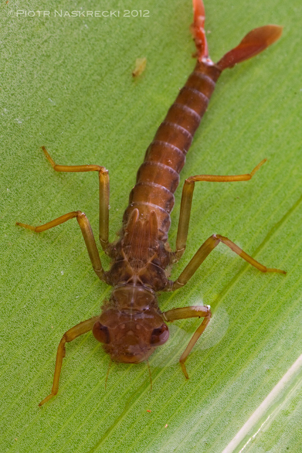 A semi-terrestrial naiad (nymph) of a damselfly (Papuagrion sp.) on a Pandanus leaf. [Canon 40D, Canon MP-E 65mm, 2 speedlights 580EX]