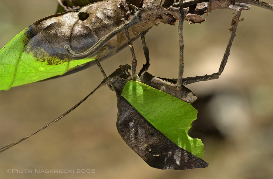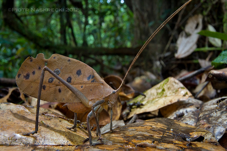 6. Great stuff, Piotr! I was just lecturing on these katydids this morning – the students are always impressed. The fact that the apparent venation in the wings resembles a leaf more than an insect is amazing. One of my pictures from Costa Rica shows a brown katydid with green eyes, and I have pictures of another species where everything is green except the cerci. I always find these little quirks some of the best evidence for evolution.