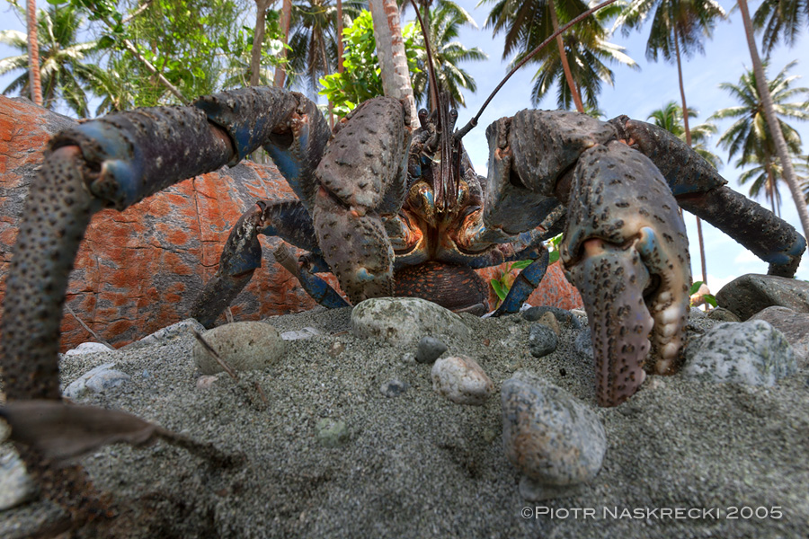 Legs of coconut crabs are of different length, perfectly adapted for climbing coconut trees [Canon 1D MKII, Canon 16-35mm, speedlight Canon 580EX]