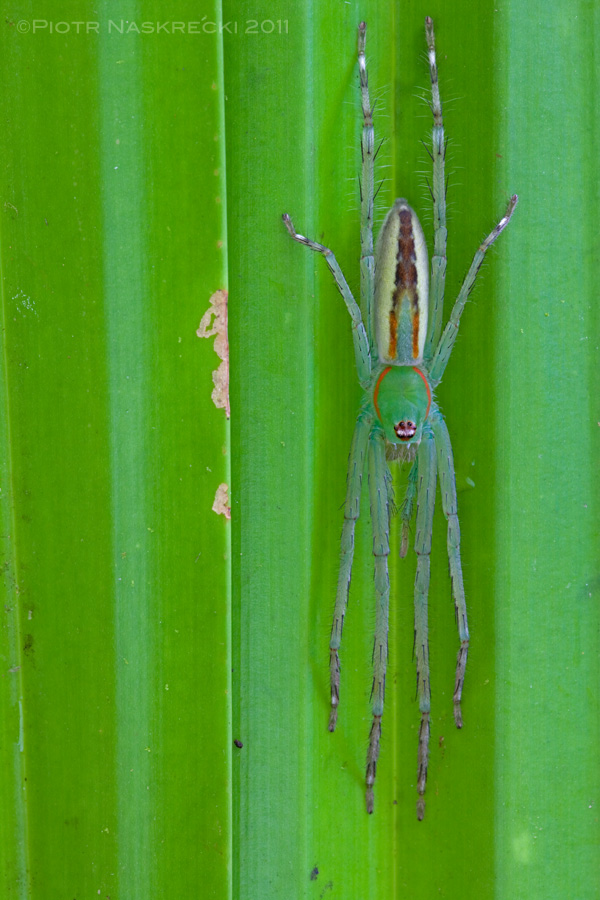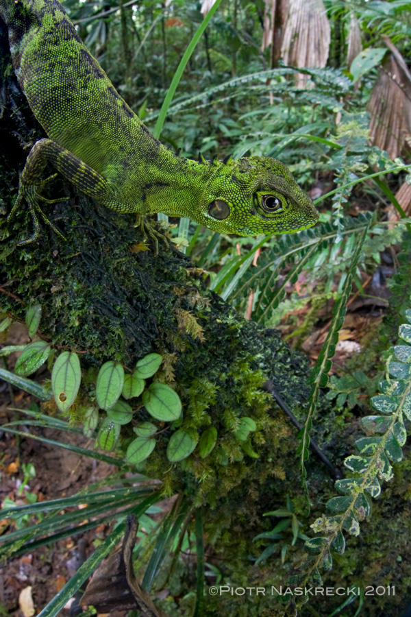 Nearly all spiders that are sit-and-wait predators prefer to wait for the prey with their heads pointing down. [Canon 1Ds MkII, Canon 180mm macro, speedlight Canon 580EX]Arboreal lizards, like this forest dragon (Hypsilurus modestus) from New Guinea, often wait for their prey while sitting upside-down on tree trunks. [Canon 1D MkII, Sigma 15mm]