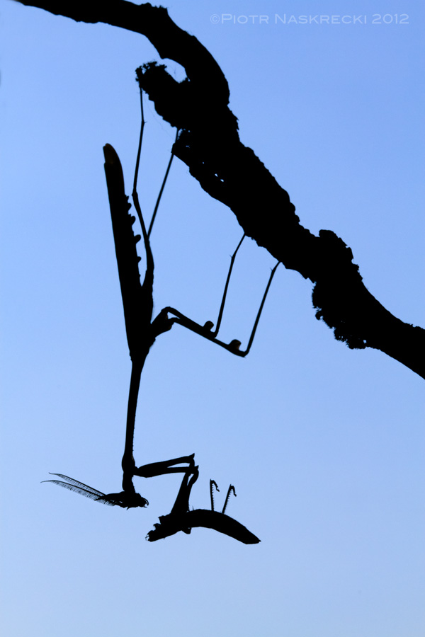 Hanging, rather than standing, is less costly energetically, and allows praying mantids to invest more resources into their large raptorial legs (Empusa capensis from South Africa) [Canon 7D, Canon 100mm]And yet, we prefer to go along the easier path of believing that all animals have the same preference to hold their heads high, and that this is somehow the “right” way. But for many organisms, especially those that make a living by being sit-and-wait predators, keeping the head pointing down makes far more sense.