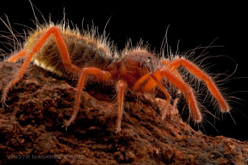 The underside of solifugids’ last pair of legs carries strange organs known as malleoli. Their exact function is not known, but they appear to be very sensitive scent organs. [Canon 7D, Canon 100mm macro, 3 speedlights Canon 580EXII]