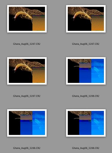 What must have happened in the case of my corrupt dipluran shots was either a copying error during the process of transferring files from the laptop to HD1 drive, or file corruption on the HD1 following the transfer. Regardless, the damaged files were then duplicated to drives HD2-HD4. So, it seems, all is lost.