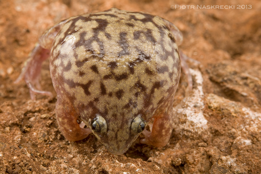 The Shovel-nosed frogs feed mostly on termites and ants, which explains their exceptionally small mouth, but it is not clear whether they are able to feed underground or only on the surface. Their reproductive biology is quite interesting – rather than laying eggs directly in the water, the female lays them in a burrow a few weeks before the onset of rains, and waits for the wet season to come. During this time she defends the eggs and newly hatched tadpoles against ants and other predators. If the conditions allow she then digs a connecting channel to a larger pond where the tadpoles complete their development, or carries them there on her back. This strategy gives the tadpoles an edge over other species because they enter the water and begin feeding before the eggs of other frogs have a chance to hatch.