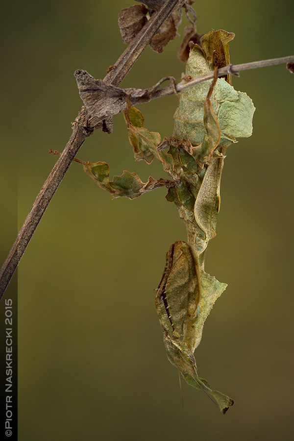 I wonder what the determining factors of the polymorphism in camouflage are. Is there an environmental cue during development that determines the shape and coloration (i.e. somehow detecting the foliage around it so it can match), or is it purely genetic? I think that would be a really cool research question.