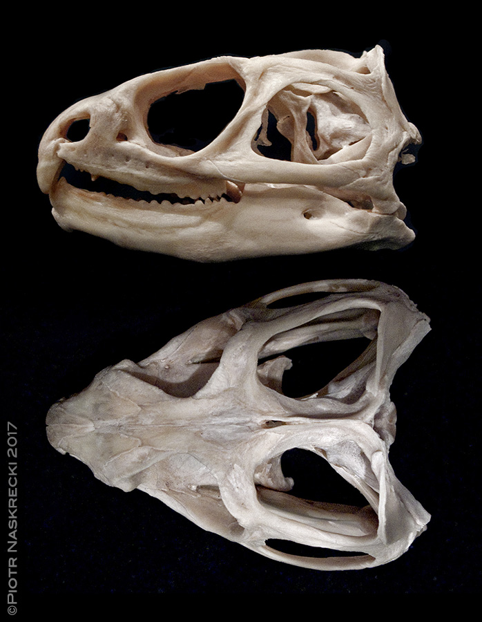 The strongest indication of tuatara’s ancient provenance lies in the structure of their skull, which still bears two pairs of large openings connected by strong, bony arches, features that have long been lost in all modern reptiles (with the exception of turtles, whose ancestors never had those openings to begin with.)